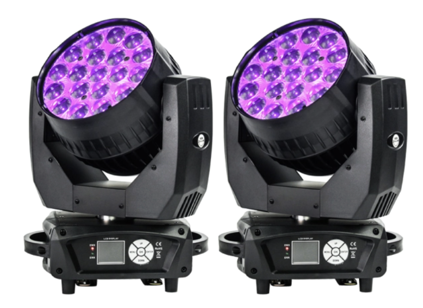 • High-output 19×15W RGBW LEDs for vibrant washes