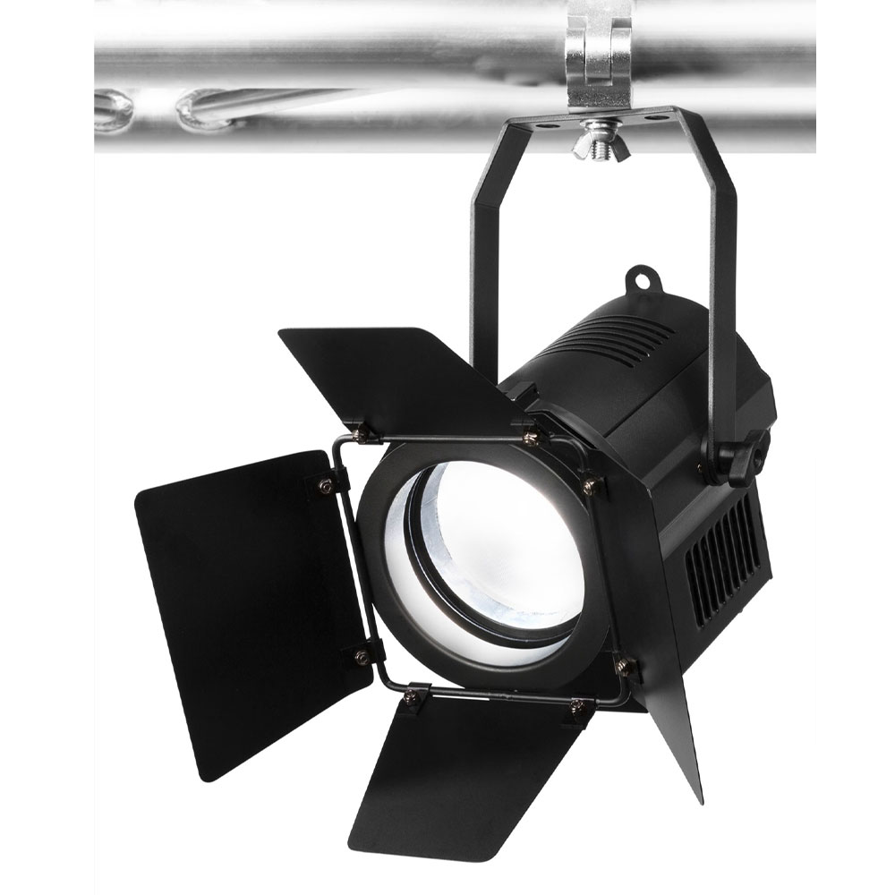 Professional Mini Fresnel Zoom LED light hire for events and productions in Gold Coast and Brisbane. RGBW colour mixing, powerful 40W output, and adjustable beam angle.