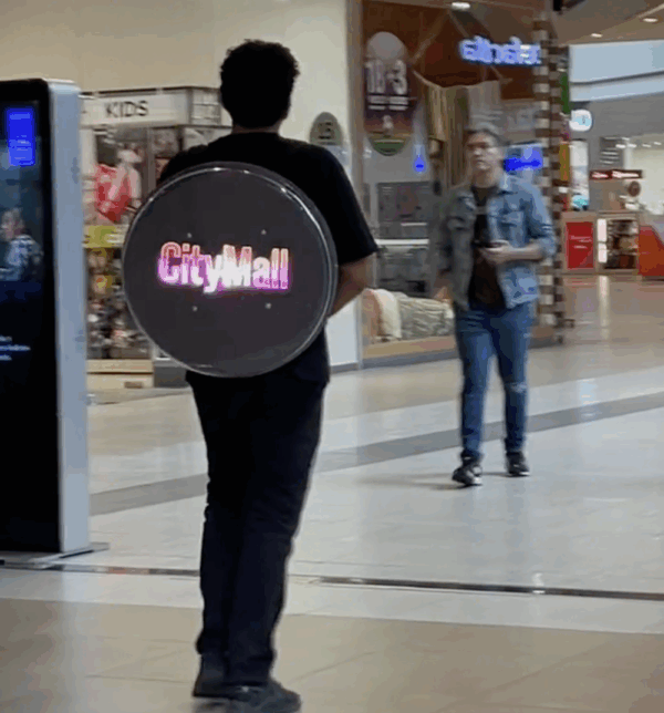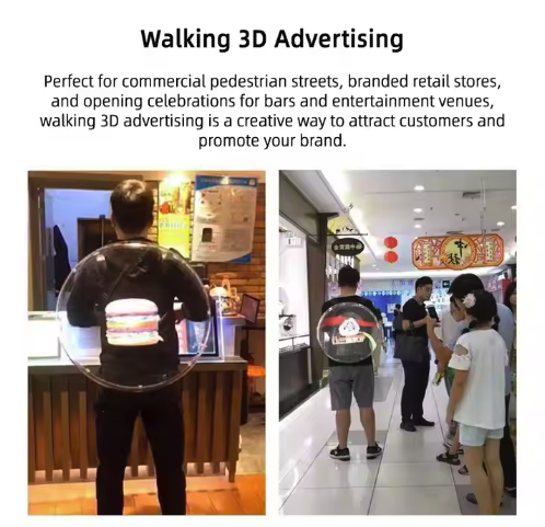 These lightweight, high-impact mobile advertising displays feature a built-in 3D hologram fan that projects stunning floating visuals while you walk through crowds, expos, shopping centres, events, and more.