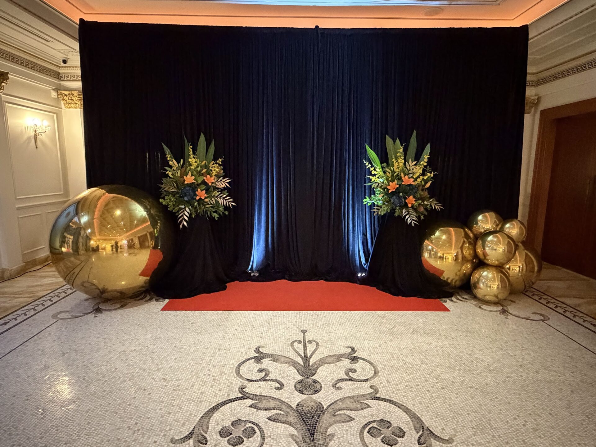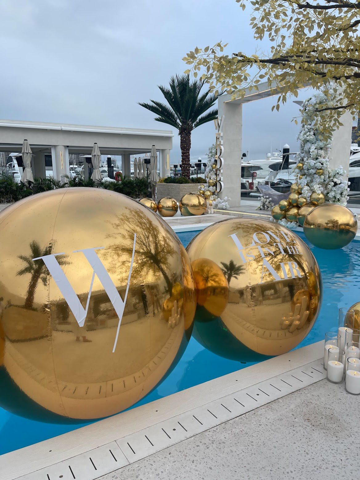 Turn heads with our Gold Shiny Balls Hire – oversized, inflatable ball decorations designed to bring a touch of glamour and fun to any event space. Whether suspended above a dancefloor, used as a photo backdrop, or scattered throughout your venue, these giant mirror-effect balls create an unforgettable visual impact.