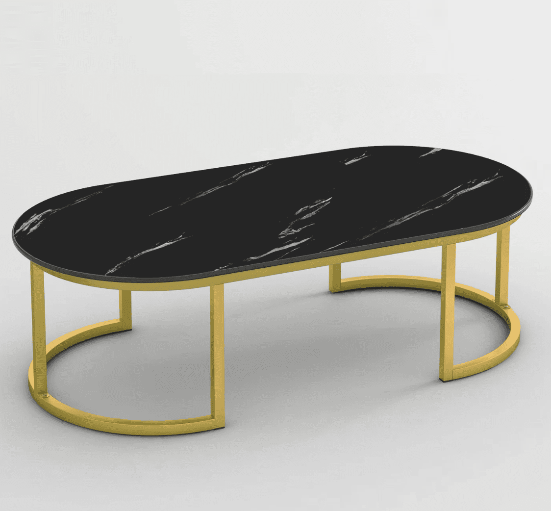 Our oval black marble coffee table with gold legs is the ultimate centrepiece for high-end lounge setups.